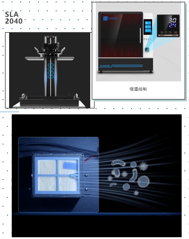 伺服電機控制系統(tǒng)搭配的精密滾珠絲桿,有效降低打印過程中產(chǎn)生的噪音,真正實現(xiàn)靜音打印。同時,SLA 2040還內置了多層空氣過濾網(wǎng),有效凈化打印環(huán)境和料池樹脂異味,讓打印環(huán)境更舒適干凈!