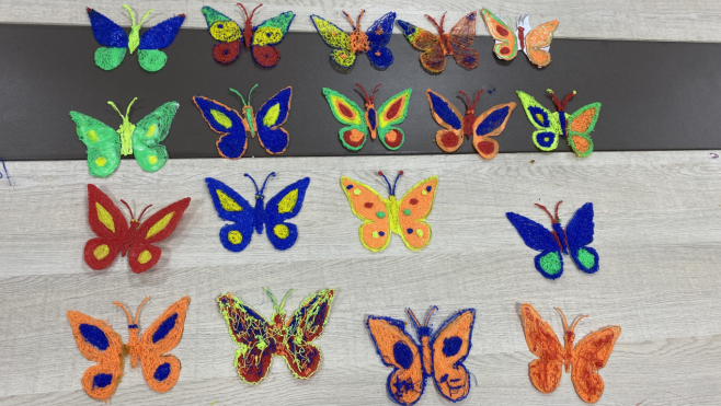 接下來的環節中,李老師帶領學生們進行3D打印筆的教學。通過幾分鐘的介紹,學生們就能快速上手操作3D打印筆進行繪畫了。小編不得不感嘆學生們的動手能力真強,能夠又快又好地完成作品。