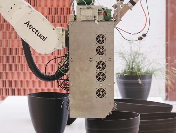 △Aectual公司的一臺3D打印機(jī)正在生產(chǎn)一個環(huán)保的花盆。圖片來自Aectual。