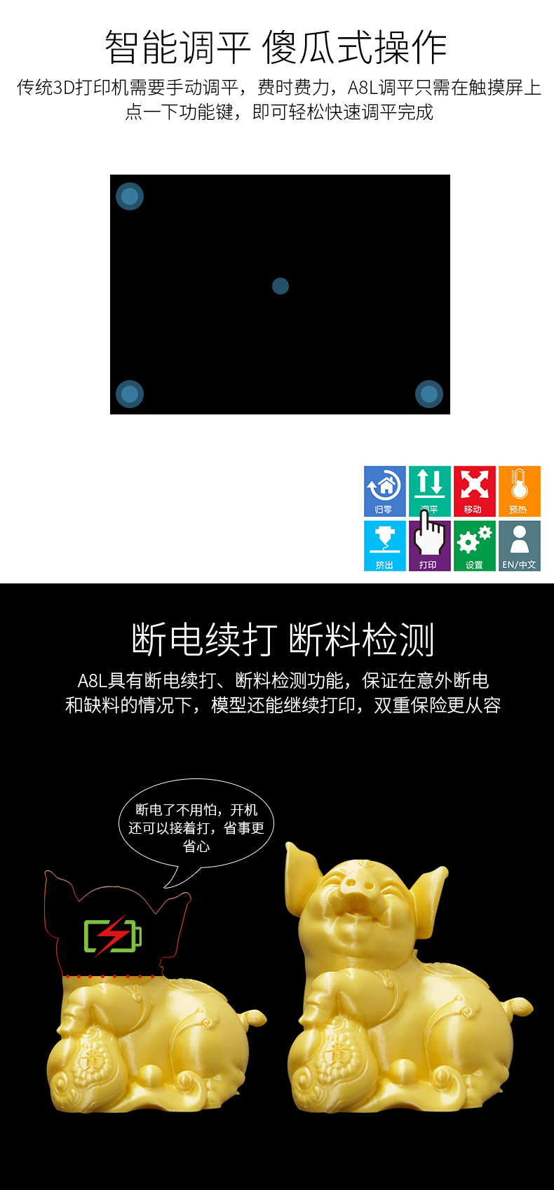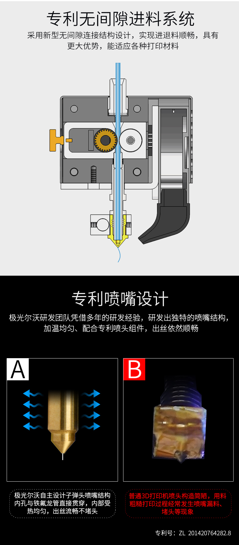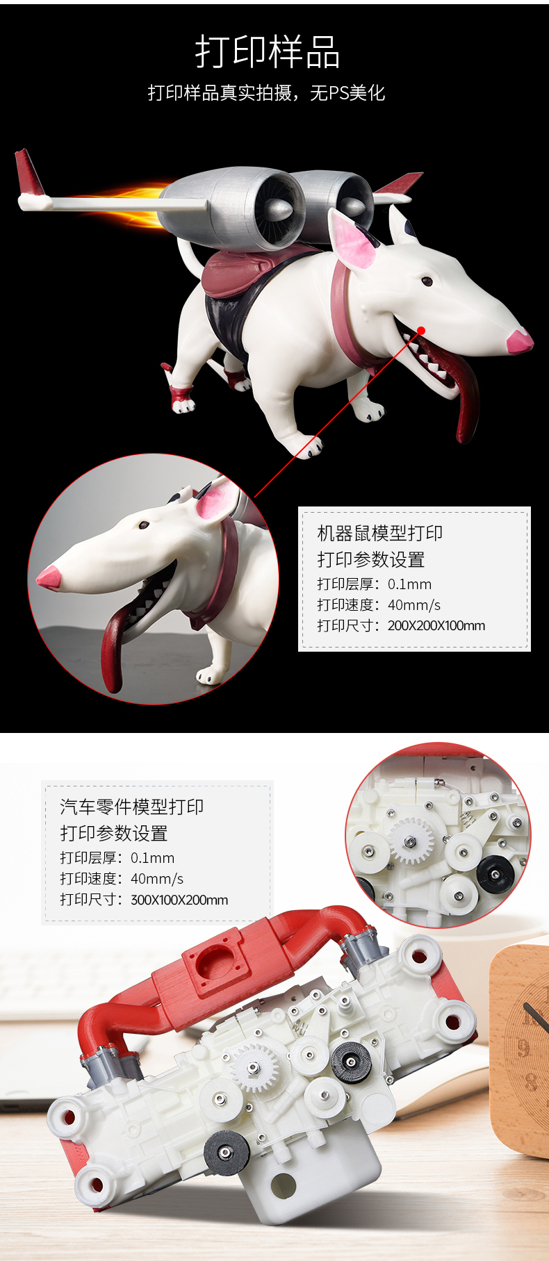 全球首創雙電機傳動送料結構,并配備高品質德國進口配件,打印精度媲美藝術品,這是一款追求“精確、精密、精致”的3D打印機。