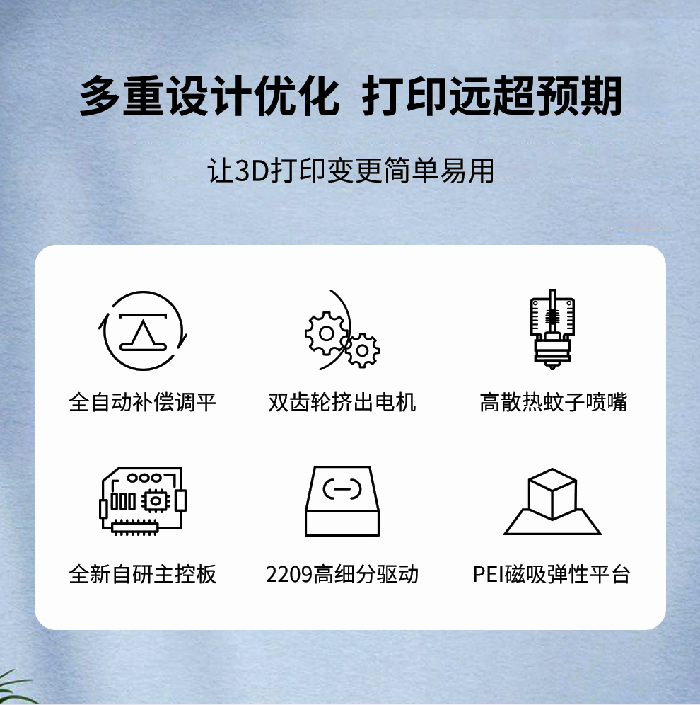 成型尺寸 500*400*600mm,擁有更強(qiáng)大的打印能力和打印精度,雕細(xì)琢每一個(gè)細(xì)節(jié),全新升級(jí),全自動(dòng)補(bǔ)償調(diào)平,打印模型堪比藝術(shù)品