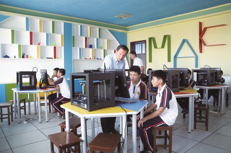 目前,“3D飛天創(chuàng)客空間”正式建成并投入使用。學(xué)生通過(guò)專(zhuān)業(yè)的中小學(xué)建模軟件,自己動(dòng)手設(shè)計(jì)3D模型,運(yùn)用3D打印機(jī)打印出茶杯、筆筒等實(shí)物,讓學(xué)生的想象變?yōu)楝F(xiàn)實(shí)。此外,在歷史、生物、地理、化學(xué)、物理等課程的教學(xué)中,輔助教具都可以通過(guò)3D打印制作出來(lái),將抽象、難懂的教學(xué)變得直觀(guān)形象化,更好地激發(fā)學(xué)生的學(xué)習(xí)興趣。